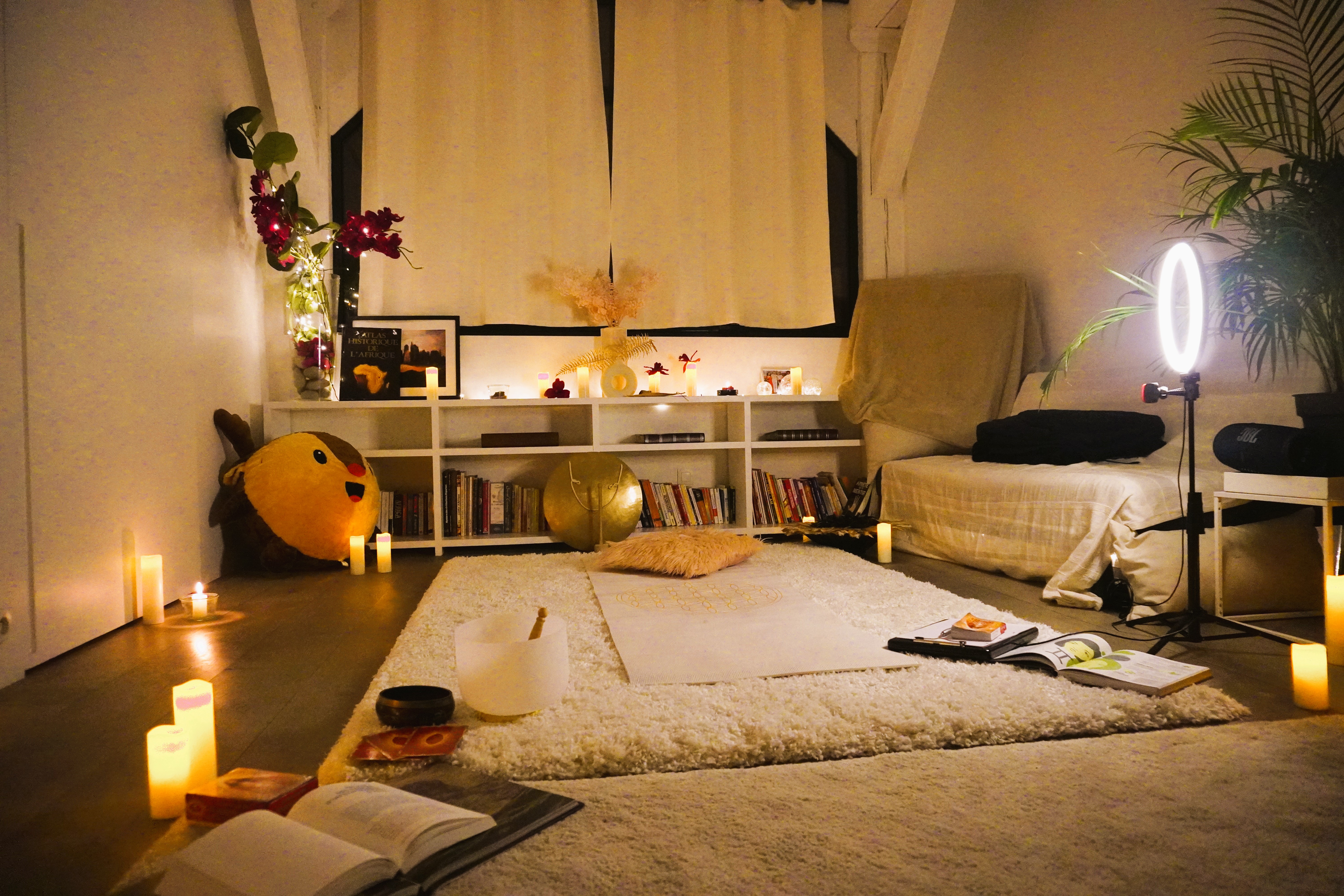 – Effectuez votre séance dans un endroit calme et confortable. N’hésitez pas à créer un environnement apaisant incluant bougie, lumières tamisées et encens.